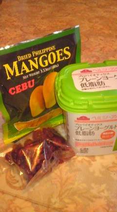 少々好きな、乾燥マンゴウの両方を入れてたべます。